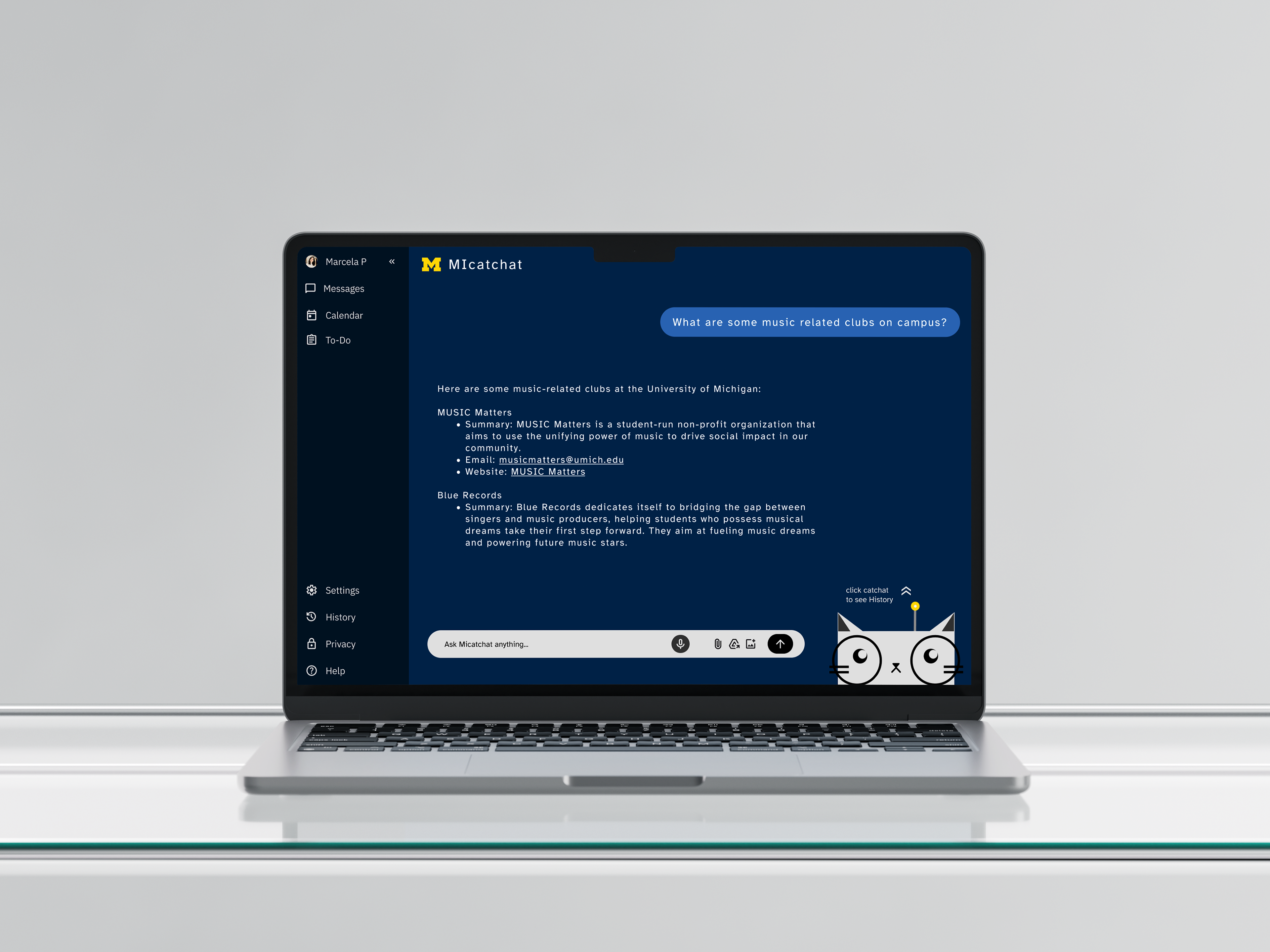 Micatchat is the University of Michigan's new personal AI assistant. This tool is redesigned with the functions of UM-GPT and MIMaizy, AI tools made by the university's Information and Technology Services, into a single platform. With MIcatchat, users can have all their questions answered in one place, from general curiosities to U of M specific queries only available through the university’s database.